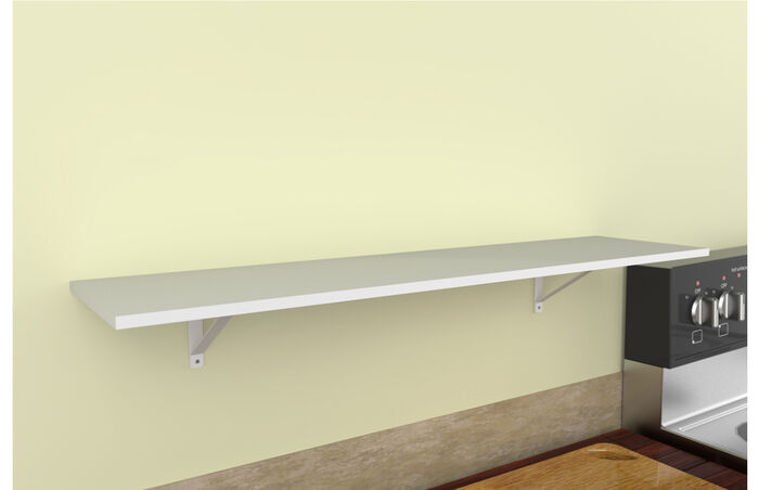 - Kits include white laminate shelf and shelf brackets with installation hardware