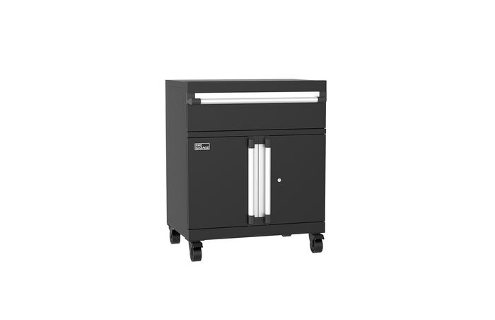 ProGarage® from ClosetMaid® is a line of garage cabinets with many options. This group of cabinets is made from sturdy 24-gauge steel. Choose from a variety of cabinet sizes, both floor mount or wall mount, as well as a worktable or tabletop. Full-length extruded aluminum handles allow for easy open/close.